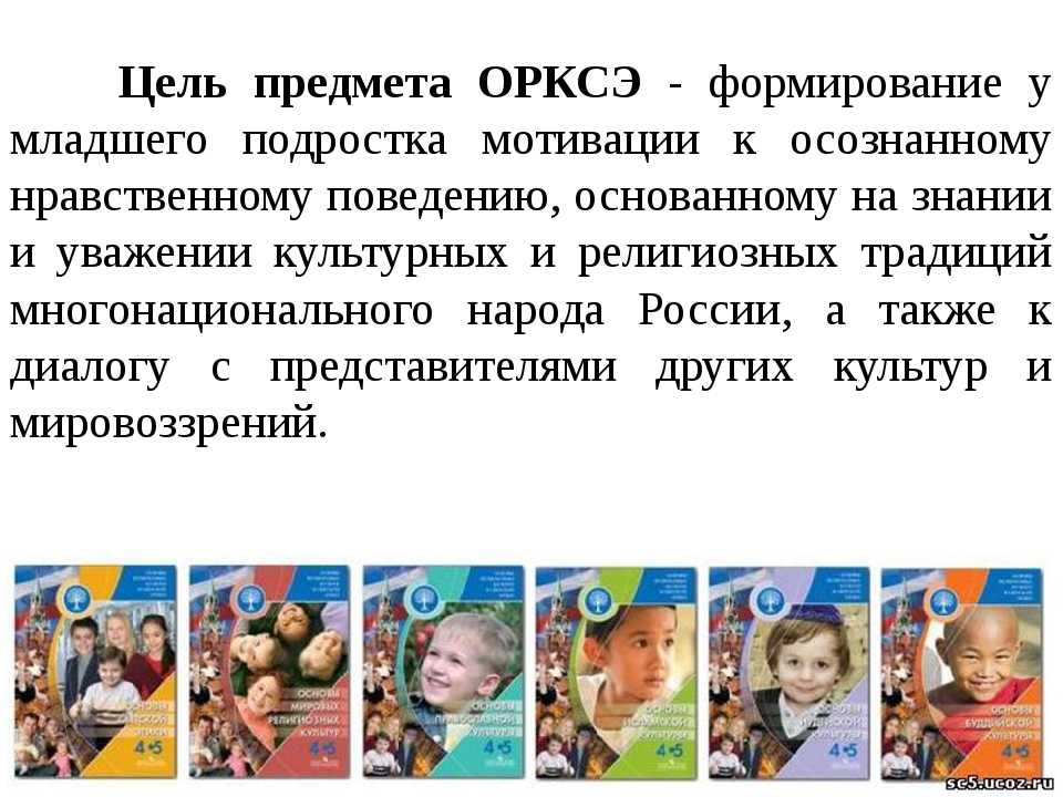 Преподавание направлено на воспитание учащихся, формирование, прежде всего, их мировоззрения и нравственной культуры с учетом мировоззренческих и культурных особенностей и потребностей семьи школьника. В связи с этим выбор для изучения школьником основ определённой религиозной культуры или мировых религиозных культур, или основ светской этики согласно законодательству Российской Федерации осуществляется исключительно родителями (законными представителями) несовершеннолетнего учащегося.