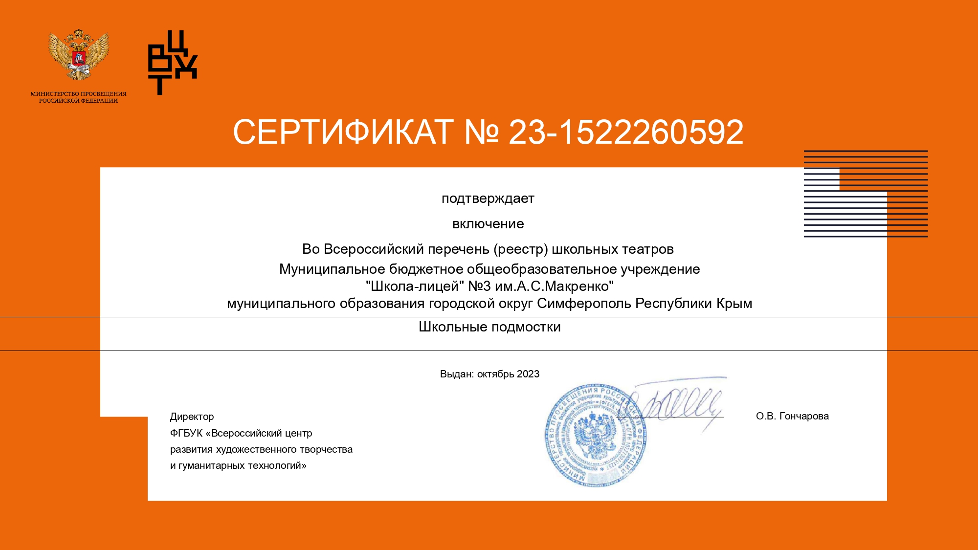 Муниципальное бюджетное общеобразовательное учреждение «Школа-лицей» № 3 им. А.С. Макаренко» муниципального образования городской округ Симферополь Республики Крым